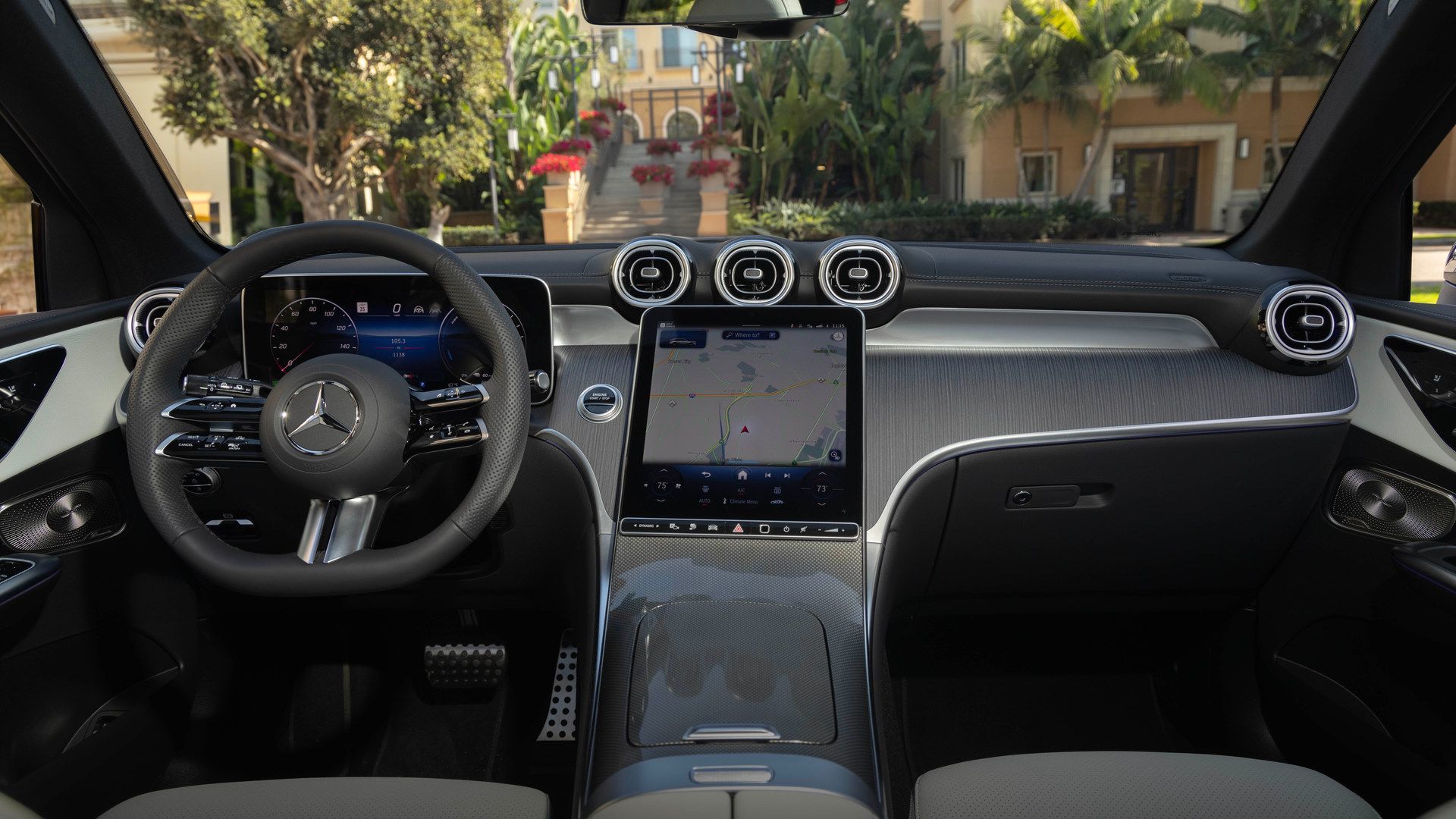 Le GLC 300 4MATIC 2026 est doté du système MBUX de 3e génération de Mercedes-Benz avec un écran tactile vertical de 11,9 pouces, la commande vocale « Hey Mercedes », la navigation MB et l'intégration sans fil des téléphones intelligents. Le GLE 450 2025 utilise l'architecture MBUX standard avec deux écrans horizontaux de 12,3 pouces — une configuration matérielle différente qui offre les fonctions de base de navigation et de commande vocale, mais sans les fonctionnalités logicielles plus récentes du GLC ni l'intégration d'applications tierces.